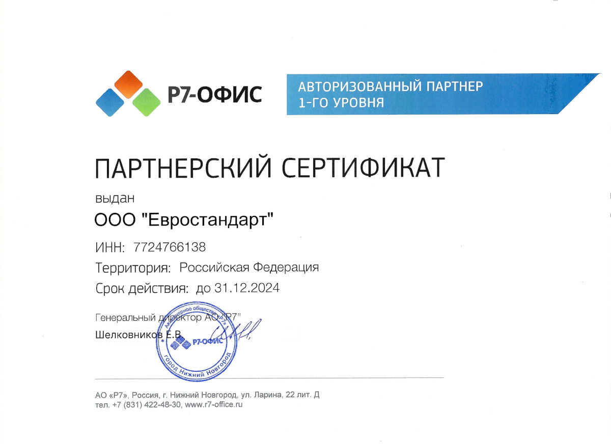 Исходя из вышесказанного, можем рекомендовать ООО «ЕВРОСТАНДАРТ» в качестве надежного партнера ИТ решений.